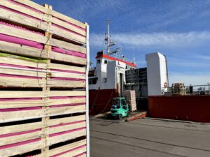 Kolejny załadunek jabłek w Gdańsku. Tym razem 574 palety.